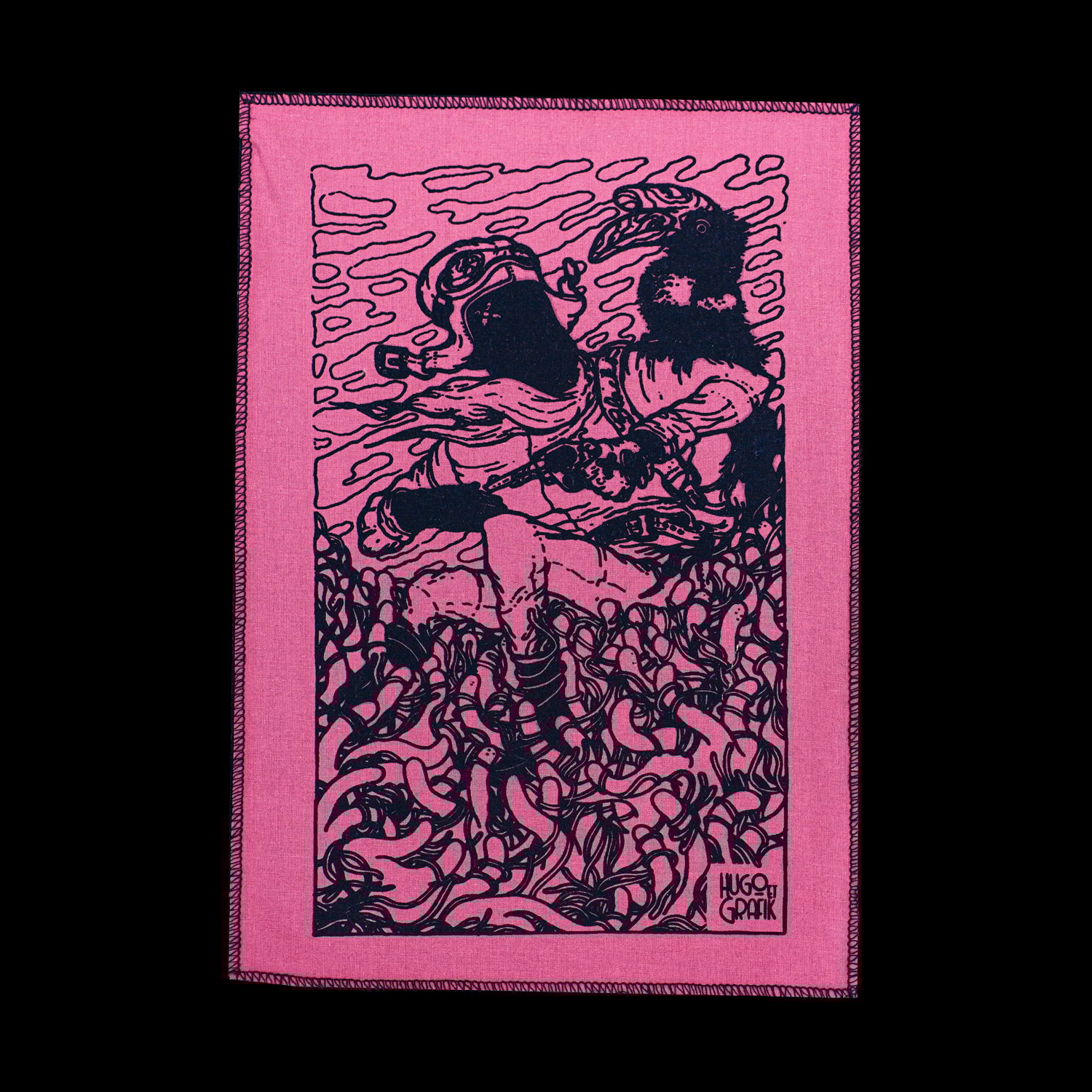 Patch sérigraphié artisanalement sur du tissu de seconde main en Ardéche