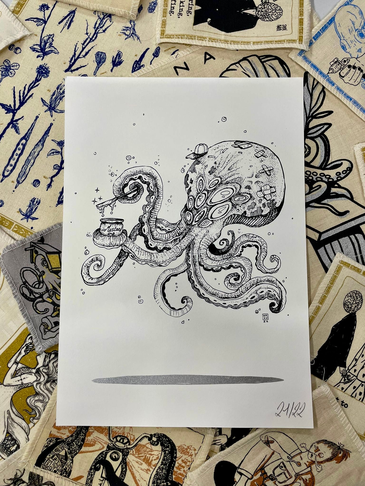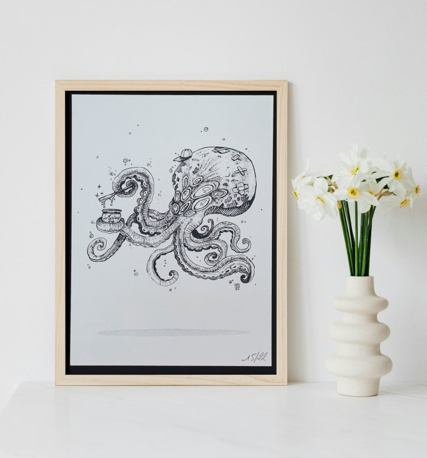 Space Poulpe - Sérigraphie sur Papier - A4 21x29,7cm by Nazu Oyasumi